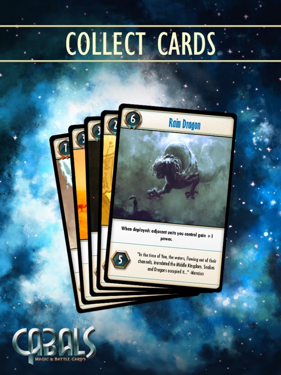 Subscribe to the TouchArcade YouTube channel Cabals: The Card Game is a revolutionary new online card game. It invites you to choose your side, expand your card collection, discover new tricks and combinations, and match your skills against single player and online opponents. FREE WELCOME PACK Download now and receive a free welcome pack worth 6$! EPIC CARD GAME Cabals: The Card Game takes the best of trading card games and board games, and combines them for a unique game that is easy to pick up, and fun to master. ONLINE AND OFFLINE Pit your skills against single player challenges and online opponents. Ranking system, clever matchmaking, and global leaderboards guarantee excellent online gaming. UNMATCHED VARIETY Experience two ways to win, four cabals with their distinct styles, and the initial set of 100 different cards. REGULAR UPDATES Regular updates introduce new cards and new features, keeping Cabals: The Card Game always evolving, and constantly fresh. ORIGINAL ART AND MUSIC Explore the original game world of Cabals: The Card Game, brought to life by the stunning art and charming soundtrack. Cabals: Magic & Battle Cards Kyy Games NEW CARDS AVAILABLE! Join this epic battle card game, played on a game board! Cabals is a free-to-play, strategy online… TouchArcade Rating: Free Buy Now Watch Media DetailsNEW CARDS AVAILABLE! Join this epic battle card game, played on a game board! Cabals is a free-to-play, strategy online multiplayer trading card game (TCG) and collectible card game (CCG), that combines card game, board game, and strategy mechanics! "One of the best designed card games available for iOS" (Zac Phoenix, Trading Card Games) "Urban Fantasy Card Game with Victorian Influences? Yes, Please! (Cabals)" (Cassandra Khaw, Touch Arcade) "The future of gaming through its cross-platform design" (Bradley Cummings, Board Game Geek) ENTER THE WORLD OF CABALS Learn the basics through a simple step by step tutorial, then develop your tactics in Single Player battles against AI. Level up and complete quests to earn rewards and collect new rare cards. REVEL IN RICH ARTWORK AND FOLKLORE The world features a rich, immersive lore, drawing heavily from real mystical and esoteric traditions. Set in Europe, the game will take you into the more shadowy recesses leading up to the 2nd World War. A power struggle rages between cabals—secret, eldritch societies—committed to exploiting forbidden magic to their own ends. The fate of humankind hangs upon the war! JOIN A CABAL AND BATTLE FOR POWER Danann Covenant, Bearclaw Brotherhood, Vril Society, Order of Zahir, Dragon Enclave and Sons of Osiris are recruiting! You can choose from 6 cabals and 15 heroes with different characteristics to suit your style. BUILD YOUR DECK Choose from pre-constructed starter decks or customize your own deck with the Deck Editor. Combine the power of two cabals by creating an alliance deck. Collect influence and use it to buy boosters with guaranteed rare cards! COMPETE ONLINE AGAINST REAL OPPONENTS After you have mastered your strategy take your forces online to learn what the real War of Cabals is like. It may not be easy so, regroup, keep your enemies close on your Friend List and challenge them when online. Chat with your friends to discuss tactics, share video replays and learn from watching others’ Everyplay replays. Climb the leaderboards and attend exciting community tournaments. Choose your side today! Languages supported: - Deutsch - English - Español - Français - Italiano - 简体中文 (Simplified Chinese) Give feedback and join the Cabals Community: http://cabalsgame.com/forum/ https://www.facebook.com/Cabalsgame https://twitter.com/cabalsgame Cabals: Magic & Battle Cards ©2017 Kyy Games ltd. ** Please note that while the app is free, it contains paid content for real money that can be purchased upon users' wish to enhance their gaming experience. Refer to device support for how to control in app purchases ** Information Seller:Kyy Games Genre:Card, Role Playing Release:Nov 21, 2011 Updated:Feb 06, 2018 Version:5.0.0 Size:314.2 MB TouchArcade Rating: User Rating: (4) Your Rating:unrated Compatibility:HD Universal http://www.cabalsgame.com/ How to Play : http://www.cabalsgame.com/how_to_play.php CARD LIST : All Card - http://www.kyygames.com/cardlists/CabalsCoreSetCardLists-All.pdf Bearclaw Brotherhood - http://www.kyygames.com/cardlists/CabalsCoreSetCardLists-BearclawBrotherhood.pdf Danann Covenant - http://www.kyygames.com/cardlists/CabalsCoreSetCardLists-DanannCovenant.pdf Vril Society - http://www.kyygames.com/cardlists/CabalsCoreSetCardLists-VrilSociety.pdf Order of Zahir - http://www.kyygames.com/cardlists/CabalsCoreSetCardLists-OrderOfZahir.pdf Sanuku Well-Known Member Jun 14, 2009 11,954 4 38 Austria http://www.touchgameplay.com #2 Sanuku, Nov 24, 2011 Nice One. I`ll get it as soon as i can ojtitus Well-Known Member Jul 7, 2010 3,228 5 38 Male Canton, Ohio #3 ojtitus, Nov 24, 2011 Yeah, I'm going to grab this as soon as it's available. It's surprising most of tonight's good releases weren't listed until the past few hours. GodSon Well-Known Member Mar 12, 2009 3,373 0 36 #4 GodSon, Nov 24, 2011 My thoughts exactly! MunkieSuthorn Well-Known Member Jun 11, 2009 364 3 18 IT Manager Connecticut, USA #5 MunkieSuthorn, Nov 24, 2011 Not on the app store as of yet... andsoitgoes Well-Known Member Jun 30, 2010 2,673 58 48 In a van, down by the river! #6 andsoitgoes, Nov 24, 2011 Yeah same problem. App shopper, check. App store, nay. Will try tomorrow. Talbs Well-Known Member May 1, 2011 2,609 375 83 #7 Talbs, Nov 24, 2011 It's so good that people post up relentlessly when apps come online. Much appreciated. BUT posting when it's not out yet will always only get the first page goig "huh?? What? Where?" etc. So yeh just a thought. Anyways, defs not out yet. Can't see it in Aus app store. Maybe in a few hours when we tick passed midnight. Can't wait. currymutton Well-Known Member Oct 16, 2008 4,430 1 0 