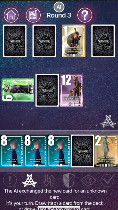 Link: https://apps.apple.com/us/app/silver-card-game/id1473134907 Silver Card Game Bezier Games, Inc. The Silver app lets you play 2-player games of Silver (the card game from Bezier Games, Inc.) against a computer AI. Lea… Free Buy Now Watch Media DetailsThe Silver app lets you play 2-player games of Silver (the card game from Bezier Games, Inc.) against a computer AI. Learn the ins and outs of the game, and practice before taking on your friends! Your goal in Silver is simple: have the lowest sum by the end of four rounds. To accomplish this, use abilities from the cards you draw, and from cards that are already face up in your village, which consists of five cards. You can trade in matching cards, and also trade out your cards for ones you draw to make matches or to lower your score. End a round early if you think you have the lowest sum by calling for a vote; if you’re right, you score 0 points, and get to use the Silver Amulet of Protection the next round. If you're wrong, though you get the sum of your cards plus ten points! The app walks you through the game, and the comprehensive Help screen gives you all the details you need to be able to play. While you’re playing, view detailed card abilities just by tapping and holding on them. Information Seller:Bezier Games, Inc. Genre:Card Release:Jul 19, 2019 Updated:Nov 09, 2020 Version:2.2.1 Size:78.5 MB TouchArcade Rating:Unrated User Rating:Unrated Your Rating:unrated Compatibility:HD Universal Subscribe to the TouchArcade YouTube channel vectorarchitekt Well-Known Member Dec 29, 2013 2,489 177 63 #2 vectorarchitekt, Jul 23, 2019 Hell yeah, always down for a new card game that isn’t just a solitaire rehash stubbieoz Well-Known Member Jun 23, 2015 1,880 358 83 Male Grey haired gamer NSW Australia #3 stubbieoz, Jul 25, 2019 It’s meant for 2-4 players. That leaves me out. Bone16 Well-Known Member Sep 13, 2012 226 3 18 #4 Bone16, Jul 26, 2019 Me 2. I’m guessing there is no one player mode with a story? Just the tutorial? strivemind Well-Known Member Aug 11, 2010 2,784 2 38 Designer Ottawa, Canada http://www.strivemind.com/ #5 strivemind, Jul 26, 2019 You can definitely play against the AI. I'm pretty sure it's limited to 1vs1 mode, since I haven't figured out how to add more AI players. (You must log in or sign up to post here.) Show Ignored Content Share This Page Tweet Your name or email address: Do you already have an account? No, create an account now. Yes, my password is: Forgot your password? Stay logged in
