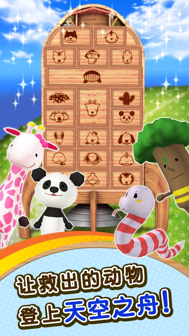 动物们的天堂正遭受破坏!移动方块创建通道,指引动物们到达安全的地方!这就是最新行动拼图游戏“动物方舟”。无需繁琐的注册,操作十分简单。马上免费下载! 在遥远的天空之城生活着许多动物,一直过着宁静的生活。 直到有一天,食土怪侵入,威胁这片漂浮乌托邦的安宁。 守护天空之城的老人导航爷爷决定将所有动物转移到“天空之舟”,再寻找新的家园。 只有你才能指引动物登上天空之舟,寻找栖身之所。 “马上营救动物!” 与导航爷爷一起开始营救动物! 《游戏说明》 免费游戏「动物方舟」,是一款拯救居住在已濒临危机之天空之城的动物们的行动拼图游戏。 操作非常简单。 滑动方块搭建动物到达目的地的路线! 如果动物的体力值降为0,将无法行走。因此需要用心搭建一条通往目的地的捷径! 食土怪会在你拯救动物时进行阻挠! 此时需避开食土怪,并拾起导航爷爷扔出的闪电对付他们。 导航爷爷还会扔出胡萝卜来恢复动物们的体力,适当拾起并利用这些胡萝卜来营救动物们! 打通一关就能赢取技能分数。 使用这些分数可以让导航爷爷的物品增加威力,也可以用来恢复动物体力和加快冲刺速度。 通关时体力越多赢得的技能分数就越多,宝箱里也能找到技能分数。 有效的营救动物们来提升技能吧! 被救出的动物将登上天空之舟。 每个动物将拥有自己独立的房间。 地图上的宝箱里有被食土怪偷走的装饰品。收集他们一点一点地装饰动物们的房间吧! 宝箱里有装饰品也会有其他物品,在前往目的地的同时尽力收集宝箱吧! 40种动物,100种装饰品! 救出动物,收集装饰品点缀天空方舟! 总共200个拼图包罗万象,不仅有需要迅速反映的关卡,还有需要仔细思考的关卡。 每一轮只需几分钟时间,即使你在路途中或是时间紧迫,也可以抽出时间玩上几轮。 立即开始“动物方舟”,拯救动物吧! 《动物方舟主要特点》 - 滑动方块搭建路线,操作非常简单!行动拼图游戏好玩又简单。 - 200个拼图关卡!内容非常丰富,娱乐性极高。 - 各式各样可爱的小动物等你拯救和收集!