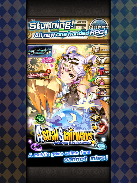 ◆500k+ Downloads in Hong Kong & Japan!◆ Astral Stairways 5th Anniversary! The 5rd-Anniversary Celebration Event has already brought happiness! Exclusive quests and events are waiting for you! The all new Celestial Compass and daily missions bring about new challenges, not to mention the rewards coming with them! We appreciate your support! For this, lots of exclusive offers are made available! Over 1400 unique followers drawn by our incredible illustrators are waiting for you! Firedog Studio's newest game! Perfect for anime fans! From the creators of Cupid Bistro!!, NeveRossa series! Save the 800 worlds, rediscover the excitement of rpg! ◆Story◆ Travel through the rift of time! Save the 800 worlds! With the power of summoning mighty followers, the hero will save the 800 worlds! Under the guidance of Goddess Kala, explore the worlds and defeat the greatest evil force! ◆Stunning Characters! Epic Battles!◆ Over 1400 unique characters drawn by our incredible team of illustrators! Position characters in battle for maximum efficieny! Coordinate characters to cast ultimate skill combos! -◆Tons of Events! Complete Mission for Rewards!◆- All new Celestial Compass and daily missions offer different challenges every day! Not only daily missions reward you with useful items, it even recharges your stamina! Complete the Celestial Compass special tasks for exclusive rewards! Don't miss it! ◆Ultimate Skills! Terrain Advantage! Unleash Your Inner Strength!◆ Strategic gameplay! Every character has their own powers, abilities and terrain skills. Carefully position them on the 3x3 formation to turn the tide of the battle! Exploit enemy weaknesses to maximize damage! Combine everything to defeat the toughest enemy! ◆Overkill & Fusion!◆ When facing tough enemies, focus them down with maximum firepower! Strike together to Fusion! Fusion recovers health and mana, necessary for defeating strong opponents! OVERKILL!! Strike with massive firepower to overkill an enemy! Rumor says overkilling an enemy has a chance to receive rare items... ◆About Firedog◆ Back in 1993, Firedog Studio was a well-known doujin group based in Hong Kong. We were passionate in ACG creations. In 1999, Firedog Computer Entertainment Ltd was founded. Games developed by the company include Cupid Bistro!!, NeveRossa and Tiara Concerto. Forged from years of experience, our first mobile game the Astral Stairways debuted in 2014. ◆Related Sites◆ FB Page: http://www.fb.com/AstralStairwaysInternational