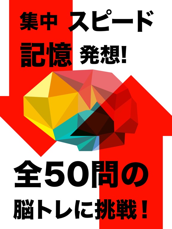 4つのゲームで脳トレ! 難易度が徐々にアップ。右脳、左脳を駆使して、全問正解を目指そう! 一つ一つのステージは短いので、電車での移動や、ちょっとした時間で、気軽に脳をリフレッシュできます。 全50問! リプレイ機能付き。間違えた問題を何度でもトライできます。 ゲーム内容: ●Change Picture 徐々に変化していく写真。どこが変わっているのかを当てよう! ●Flash Memory 数秒だけ画像が表示されます。 その後出題される問題に答えましょう。 ●LOST Number 「0」〜「9」の間で、一つだけ抜けている数字を答えましょう。 ●Five - Two 画面いっぱいに散らばる「5」と「2」。 「2」だけを繋げると、ある文字が浮かび上がります。