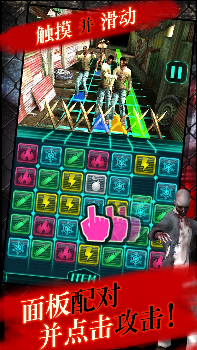 配对面板来攻击僵尸!库玛熊出品的一款全新益智防御类游戏!移动面板来制造武器,阻止病毒在全国蔓延! 一种神秘的病毒引发了全国范围的蔓延!无数波僵尸在逼近! 配对你的面板来制造武器,在游戏“Catastrophic Zombies!”中打败僵尸!世界的命运就在你的手中!操控简单,无需注册!现在就下载吧! 它开始于一个非洲的小村庄… 你被派去调查一种奇怪疾病的爆发。 你发现这个村庄里到处都是僵尸, 它们就在你眼前攻击人类,并且数量越来越多! 用全息图界面来与世界各地的僵尸战斗吧! “Catastrophic Zombies!”是一款益智防御类游戏,你可以在全息拼图中配对面板来制造武器,攻击僵尸。简单的触摸和滑动操控使这款游戏相当完美,老少皆宜! 游戏非常简单。 ①与相邻的面板互换。 ②纵向或横向配对4种或更多相同颜色的面板。 ③点击你制造的武器来攻击僵尸! 就这么多! 滑动来互换相邻的面板,或纵向或横向配对4种或更多颜色相同的面板来制造武器,一旦你制造好了一个武器,你就可以点击它来攻击僵尸! 在2 x 2的方块中配对相同颜色的面板来制造一个超级武器! 这些武器将会打到僵尸的后排并造成双倍伤害! 当武器面板消失,面板将会从底部补充。 如果你制造的武器面板被移动,它们会回复为普通面板。务必小心检查拼图! 攻击是回合制的。每一次你移动一个面板,僵尸也会移动。如果你不能制造武器,僵尸就会越来越向你逼近! 当你受到攻击的时候,你设置的路障会保护你免受僵尸的攻击。 然而,一旦超时,路障就会损坏,这时候僵尸就会越过它们! 如果你受到的伤害让屏幕完全变成红色,游戏便结束了! 有效的攻击是防御僵尸的最好方法。 你可以冰冻它们来阻止它们行动,逼退它们,用连击攻击它们,或者用你配对的不同颜色的面板来攻击它们。一旦你玩熟练了,你就可以按照你的优势来选择使用不同颜色的属性! [[武器效果]] ◆火焰(红色):攻击目标及其左右方块。 ◆冰冻(蓝色):冰冻敌人2轮进攻。 ◆雷电(黄色):攻击目标并让其退后2个方块。 ◆枪炮(绿色):逼退敌人2个方块。 ◆强酸(紫色):攻击敌人并在接下来的5轮中持续伤害。 ◆爆炸(白色):攻击目标和它们附近的区域。 如果你攻击的时候其它的武器被制造出来,这些武器会自动开火并形成连击! 连击的时间越长,造成的伤害越大。当你配对了面板的颜色之后,试着创造连击吧! 当你攻击僵尸的时候,你得到的点数叫做“G”。 你可以用你的G购买能造成大量伤害的道具,升级路障和修复路障。游戏结束你的G也不会被清零,所以,不要放弃! 如果你和僵尸作战的等级提升,你的力量也会提升。快来获得经验升级吧! 当你通关的时候,你打败的僵尸会保存在你的文件里。 如果你通过了一个区域的全部15关,你就可以去下一个区域。 快通过所有区域来拯救失落的文明吧! [[“Catastrophic Zombies!”亮点]] ◆简单的触摸和滑动操控使游戏通俗易懂,老少皆宜! ◆简单但极富战略性的游戏设置特别是连击的设置。容易上手,但不容易掌握! ◆一个遍地恐怖僵尸、逼真的游戏世界! - COLOPL, Inc. -