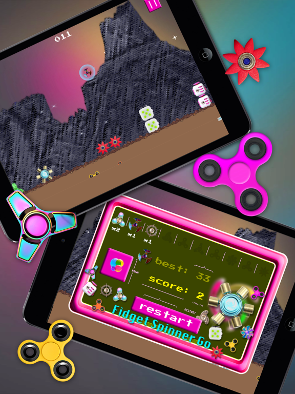 Fidget Spinner Go - Spinner Cube block Game: Tap to Jump, 2 tap to jump higher. Get 10 different style Fidget Spinner to rebuild ship. Endless Randomly generated level.