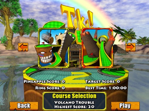 Tiki Golf 2 redefines extreme minigolf! "Tiki Golf 2 mixes putt-putt golfing, physics and platform gaming together in one amazing game." -AppAdvice.com Tiki Bobby is back and He has brought friends! 4 Playable Tikis! bunches unlockable secret clubs, golf balls and abilities! Ramps, mega power boosts, giant dartboard targets, huge hammers, loop-de-loops, pipes, pineapples, massive tiki totems and more! Exotic vibrant courses that have the iconic mini golf appeal but feel more like water park rides than typical putt putt courses! 4 courses and 72 holes Worlds/Courses -Beach Sunrise -Volcano Trouble -Lost Beach -Kahunas Mountain Ball Abilities - Slow Motion - Ghost, Mega Control - Speed, Anti Gravity - Jump, Instant Stopping power Club Abilities - Accuracy - Mega Power - Amplify - Out of Bounds immunity - Opposite day - Stat bonuses Customize your extra bonuses for - Steering - Collecting pineapples - going through rings - hitting targets - based on power - speed - luck